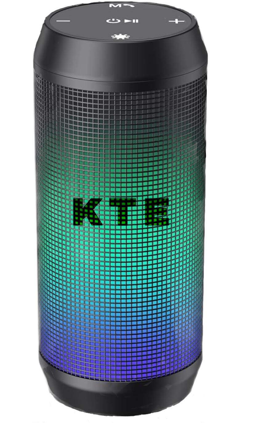 Enceinte cylindrique avec des extrémités rondes avec comme couleurs du vert du violet et du noir